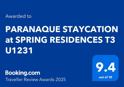 Make PARANAQUE STAYCATION at SPRING RESIDENCES T3 U1231 your home away from home during your stay in the city of Manila, the Philippines. Select your dates and book your stay now!