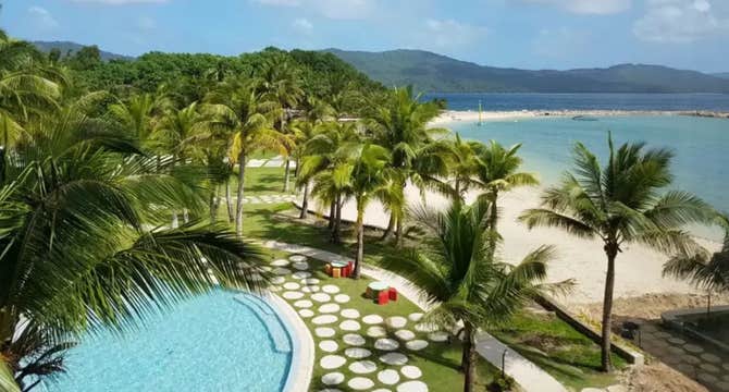 Surrounded by the natural beauty of the Bicol Region and framed by the distant silhouette of the majestic Mayon Volcano, this luxurious resort offers the perfect blend of relaxation and adventure in a secluded island paradise.