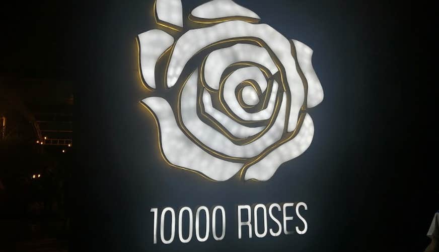 The coffee shop inside 10,000 Roses Cafe, on the other hand, is a two-story concrete building with an outdoor dining area and an air-conditioned dining section. Its viewing terrace provides a stunning ocean view during the day and spectacular lights at night.