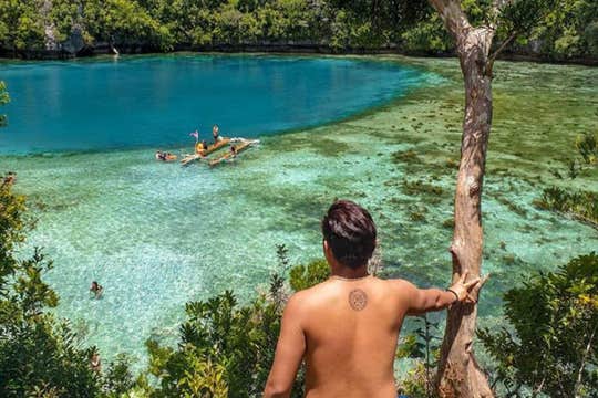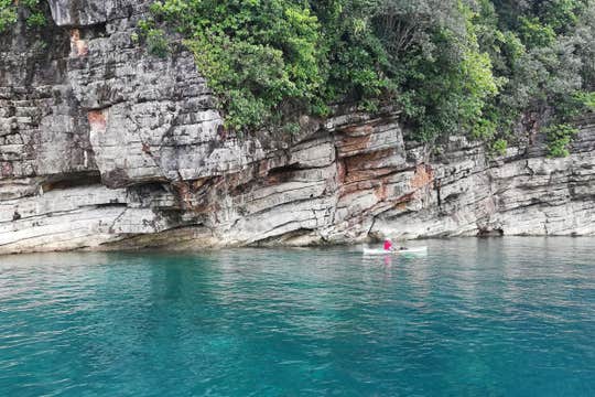 This tour will also bring you to Jelmar's Islet Resort, where the bamboo boardwalk offers panoramic views of the clear waters and towering rock cliffs. Here, you can enjoy a refreshing dip in the water.