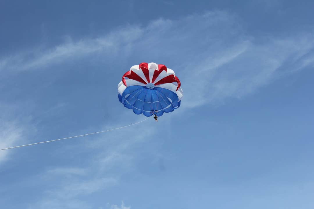 The boatmen will fit you with a life jacket and secure you to the colorful parasail. As the speedboat gains momentum, you'll feel yourself gently lifted into the sky, floating higher above the water.