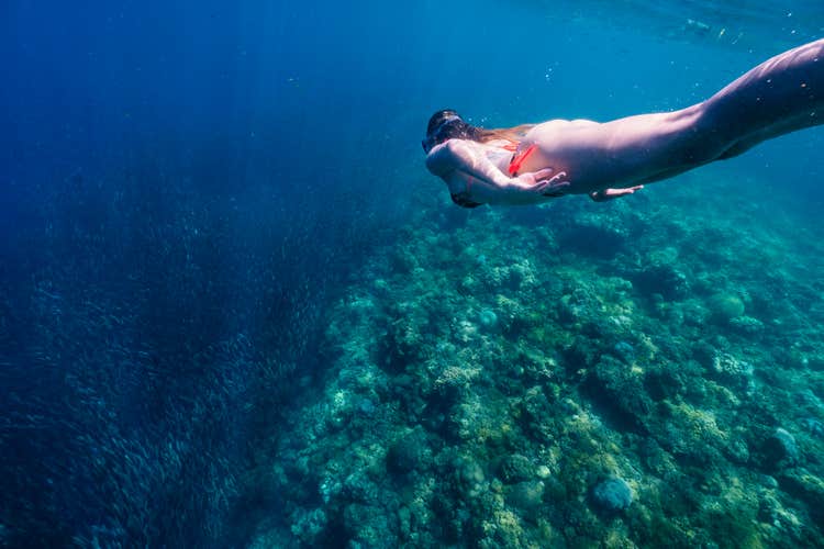 You can swim in the island’s crystal-clear, protected marine waters for an unforgettable snorkeling experience, where vibrant coral reefs and diverse aquatic life await just beneath the surface.