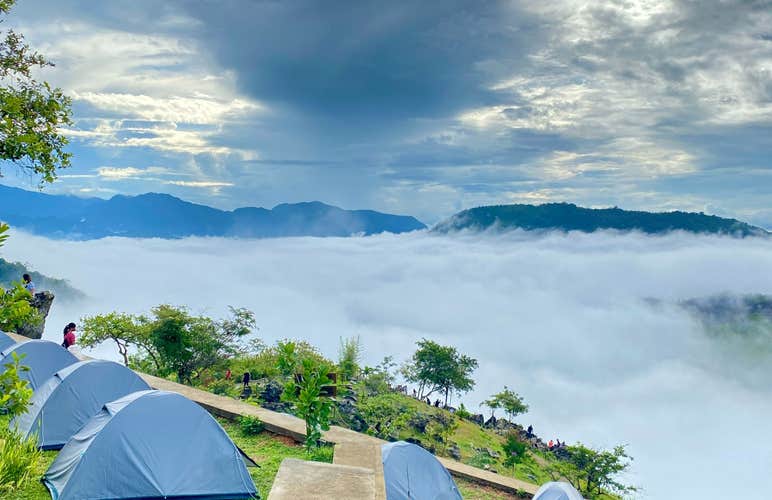 If you plan on taking the campsite's add-on shuttle service from Manila, you will have to meet with the driver between 3 to 4 AM at any of the following shuttle stations: Wendy's Greenfield District at Shaw Boulevard, Kenny Rogers Roasters at SM Cubao, and Tropical Hut at Q Plaza Commercial Center. Otherwise, you can take your own car straight to the site. Upon arriving at the camp, you will have some free time so you can take photos of the sea of clouds and nearby rock formations. Around 7 AM, you'll be treated to a complimentary breakfast.